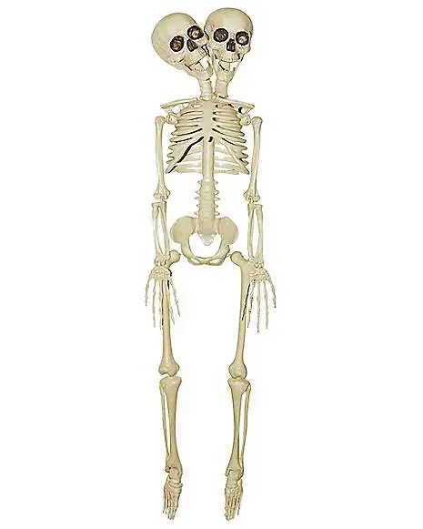 Don’t worry, you’re not seeing double They say two heads are better than one, and so this two-headed skeleton must be double the fun! Make all of your guests do a double-take when they see this skeleton hanging in any room of your home, and perhaps even cause a scream or two!