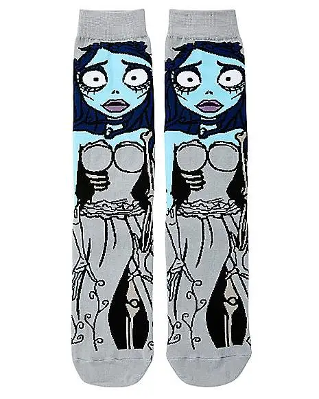 Show off your favorite movie when you put on these official 360 Corpse Bride Crew Socks! These fun socks feature a bold image of Emily and are perfect for any Tim Burton fan.