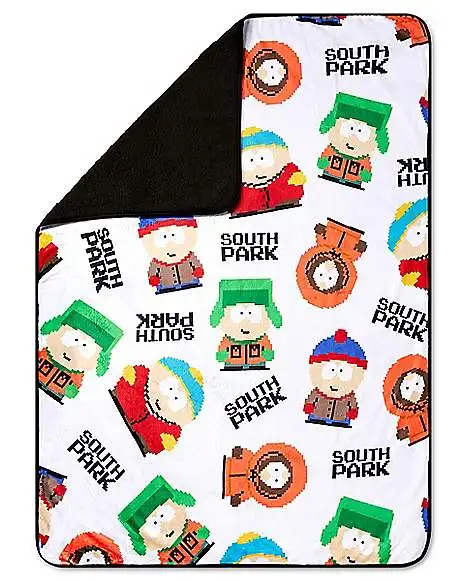 Keep yourself warm all throughout your next South Park marathon with this officially licensed 8 bit print South Park blanket. Any fan of Kyle, Stan, Cartman, and Kenny will love making this sherpa blanket a part of their collection.