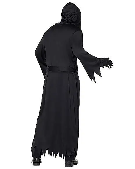 Create a dark character with this grim reaper robe! This comfortable robe features a jagged hemline and a hooded detail that will keep you creepy all night long!