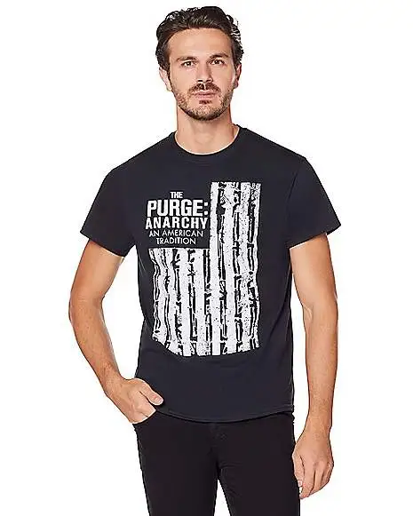Embrace an American tradition in this black t shirt! This intimidating graphic tee is ideal for fans of The Purge: Anarchy.