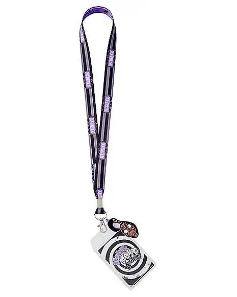 Carry your keys and ID and show off your favorite movie with this fun Beetlejuice lanyard! This lanyard keychain says Beetlejuice (three times!) on it and has a charm of the shrunken head guy. It’s perfect for any Beetlejuice fan.