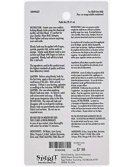Add a bone-chilling touch of realism to your Halloween look with this spooky Bloody Scab formula! This theatrical quality fake blood can be applied with a finger, a popsicle stick, a cotton swab, or a sponge for a realistic scab effect.