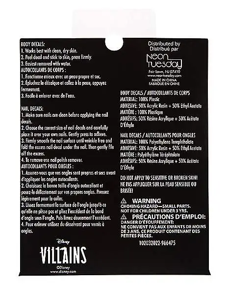 Complete your Cruella look with these fashion decals. Coming complete with 5 body decals, and 14 nails stickers, you’ll be sure to complete your Disney Villains costume.