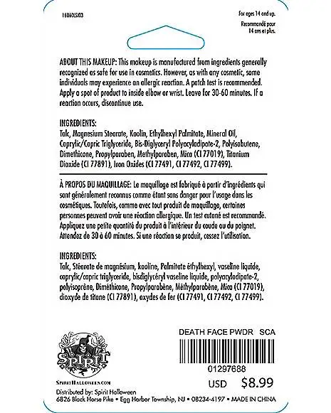 This gray face powder is perfect for any ghostly, ghoulish, or spooky costume! From zombies to skulls and ghosts, this gray makeup will add a realistic touch to almost any costume and is great for touch-ups on the go!