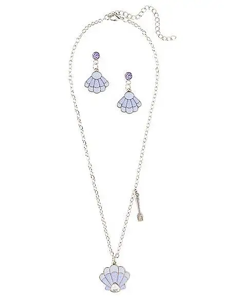 Complete your Princess Ariel costume with this Kids Ariel Jewelry Set! This officially licensed jewelry set, which includes one enchanting blue and purple seashell necklace and a pair of matching seashell earrings, is a great choice for any fan of The Little Mermaid. The necklace even has a dinglehopper (aka a fork) charm!
