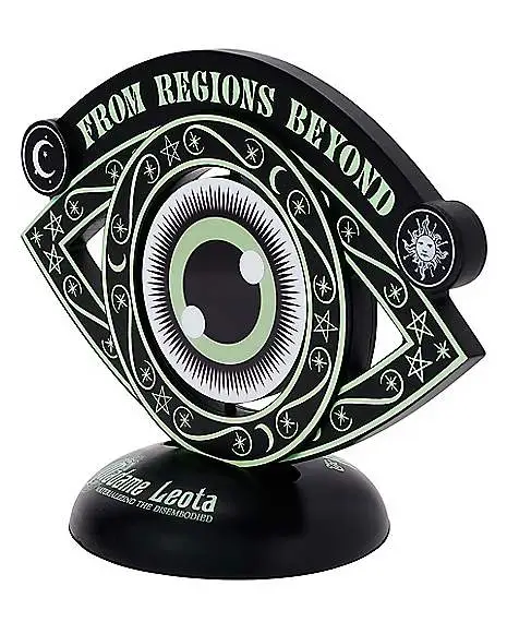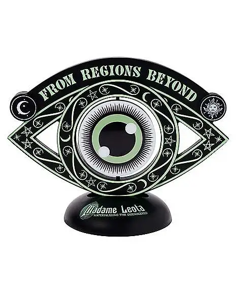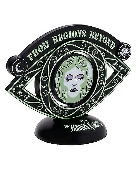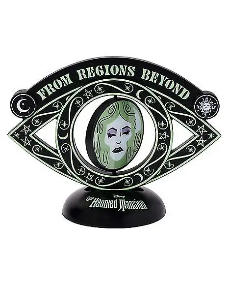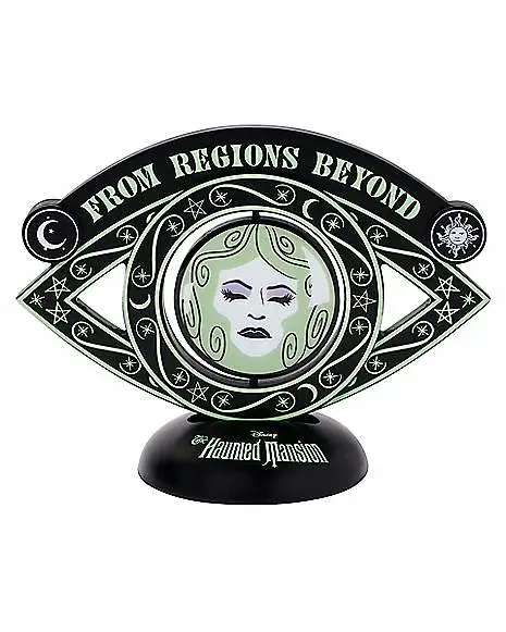 Welcome, foolish mortals! Show your love for your favorite Disney attraction with this eye-catching sign! This officially licensed piece features Madame Leota, an iconic character from The Haunted Mansion, surrounded by enchanting celestial detailing. With its spinning eyeball design element, this decoration will always be able to keep an eye on you.