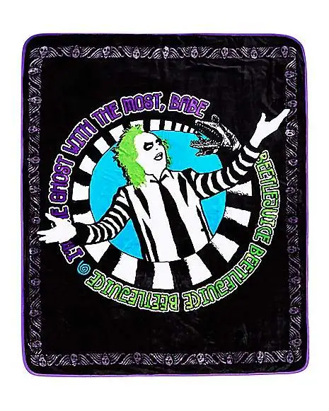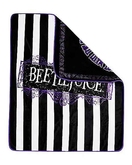 Catch some Z’s with your old pal Beetlejuice with this comfortable piece of Halloween movie history. The Beetlejuice reversible fleece blanket is perfect for the bed, couch, or hanging on the wall: one side is Beetlejuice himself, the other is the iconic white and black stripes and Beetlejuice logo.