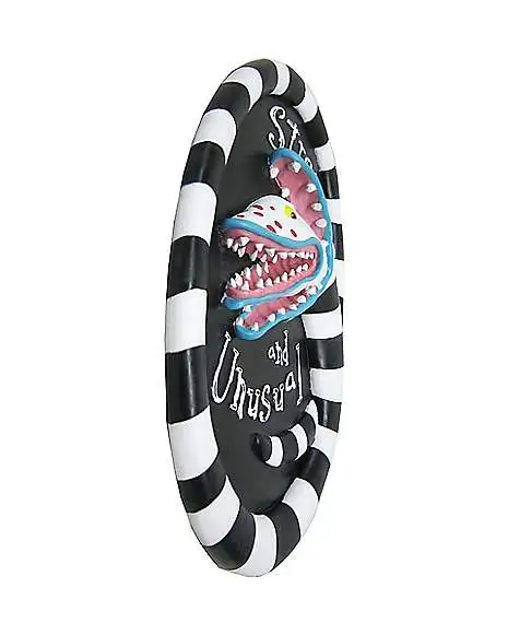 Straight from the sands of Saturn comes this sssssscary hanging sign! This officially licensed sign features a sandworm from the classic film, Beetlejuice, and the quote “Strange and Unusual.” This decoration is perfect for any fan of this timeless movie!