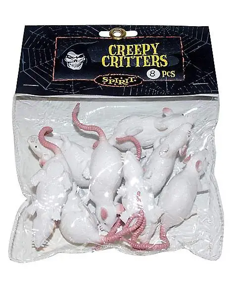 Freak out your guests with the Squooshey Mouse 8-Pack. This package contains 8 pieces of fake, rubber, white mice with pink tails, sure to make your visitors yelp!